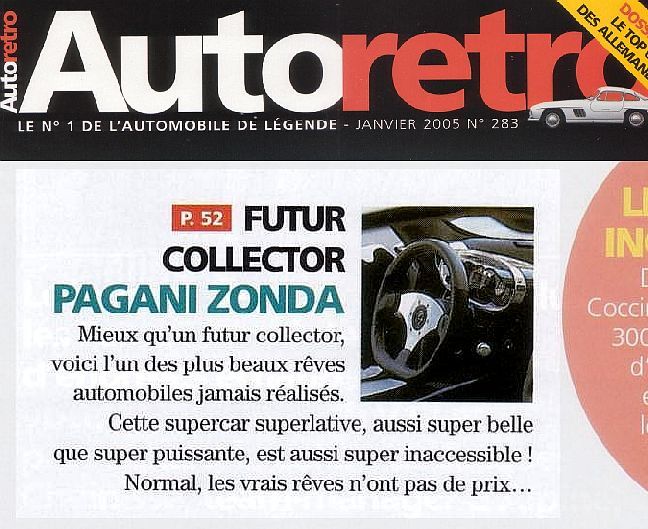 La revue de référence Automobiles Classiques avait remarqué la Zonda Monza exposée par AUTODROME en exclusivité.