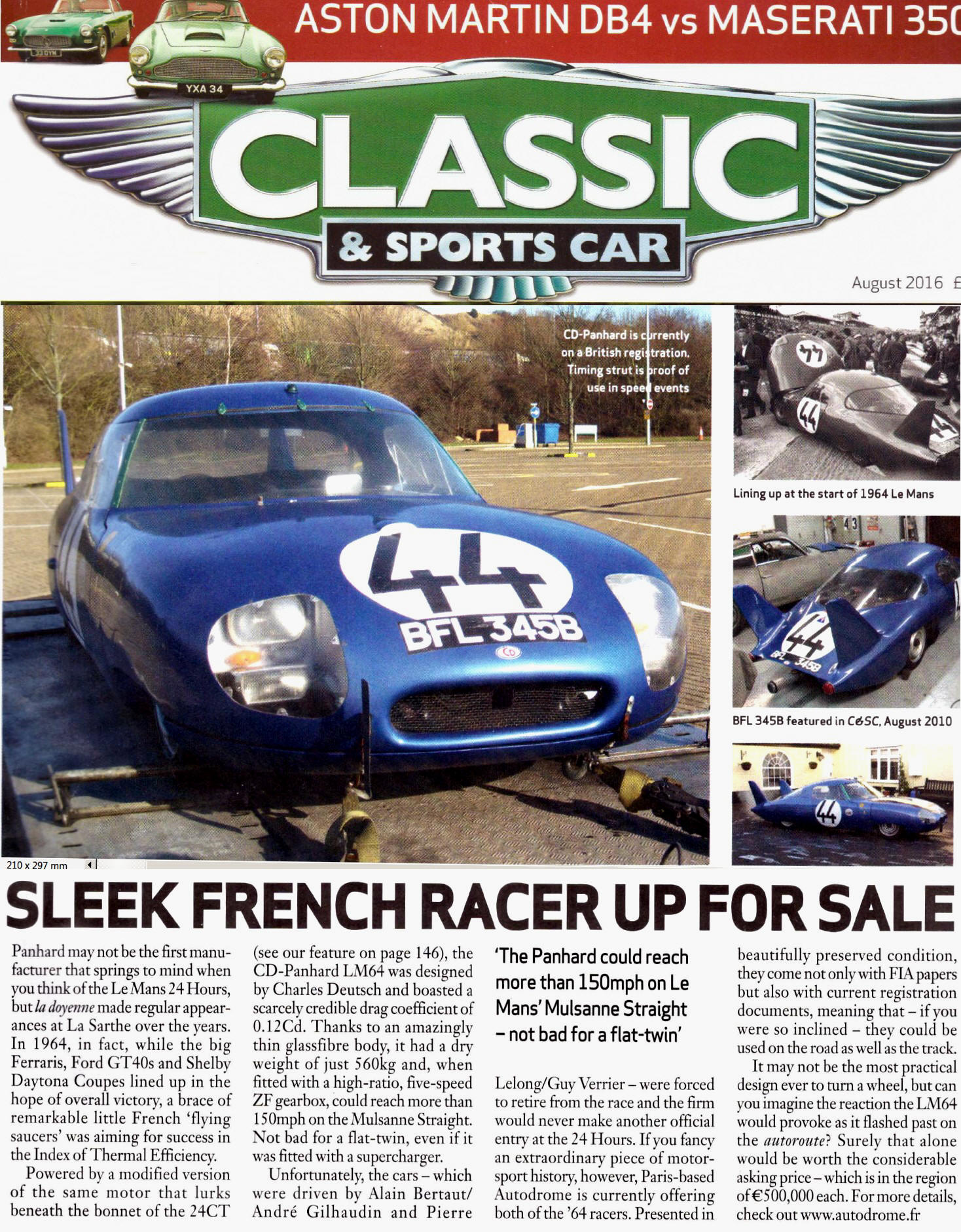 La CD-PANHARD LM64 du Mans 1964 dans Classic & Sports Cars (Août 2016)