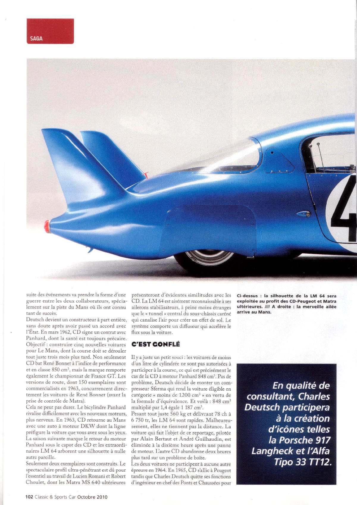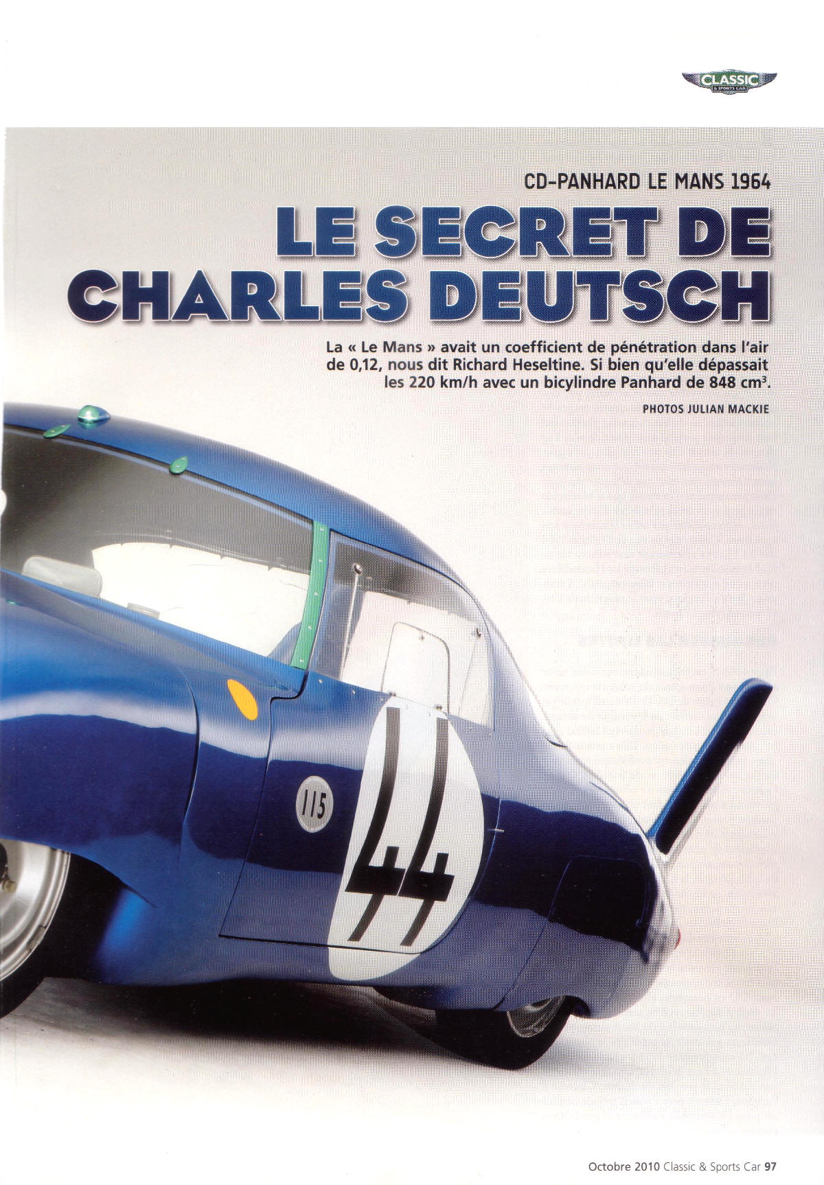 Charles Deutsch sera en effet à l'origine de la création d'autres icônes : la Porsche 917,la Matra MS640 et l'Alfa Tipo 33 TT12. La CD reste un des monuments de la course automobile.