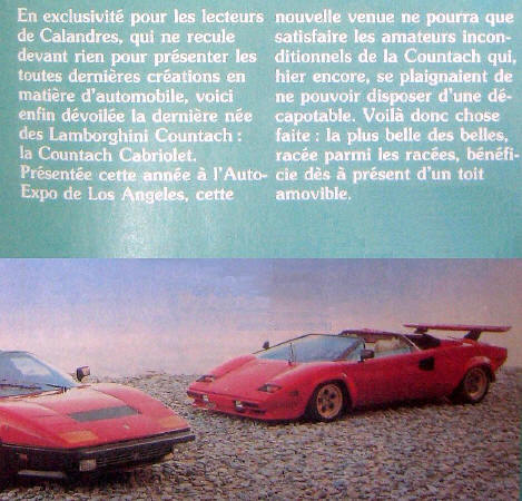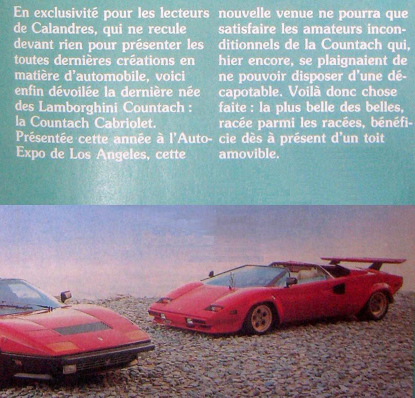 Cette rare coupure de presse française d'époque montre bien l'impact mondial suscité par la création d'une Countach LP440 Spider !