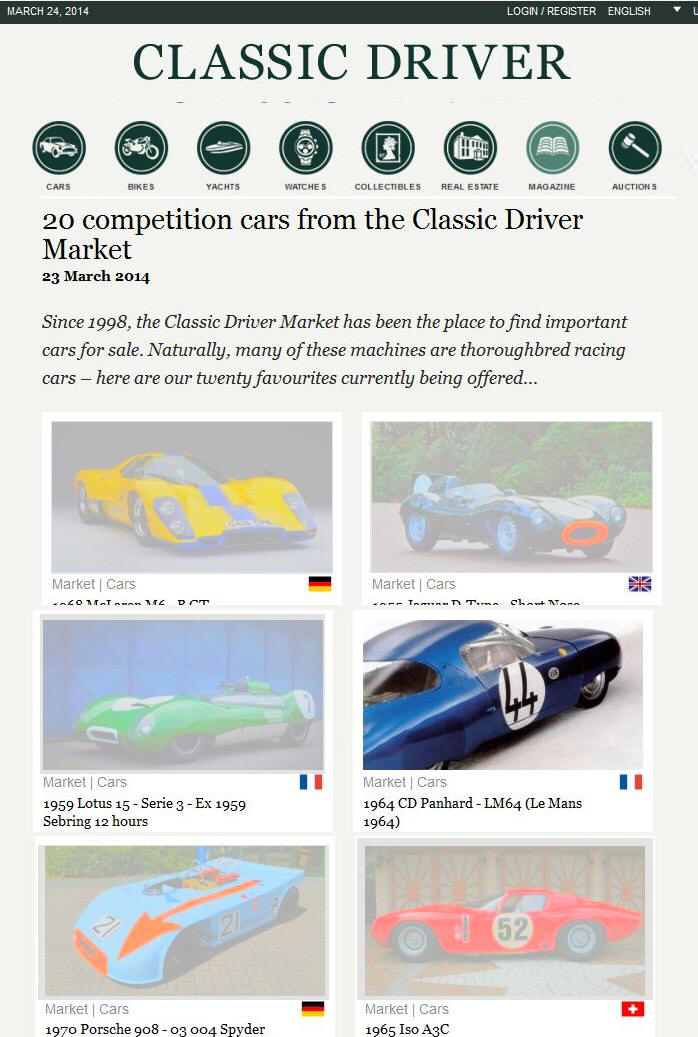 CLASSIC DRIVER sélectionne notre CD-Panhard 1964 comme l'une des