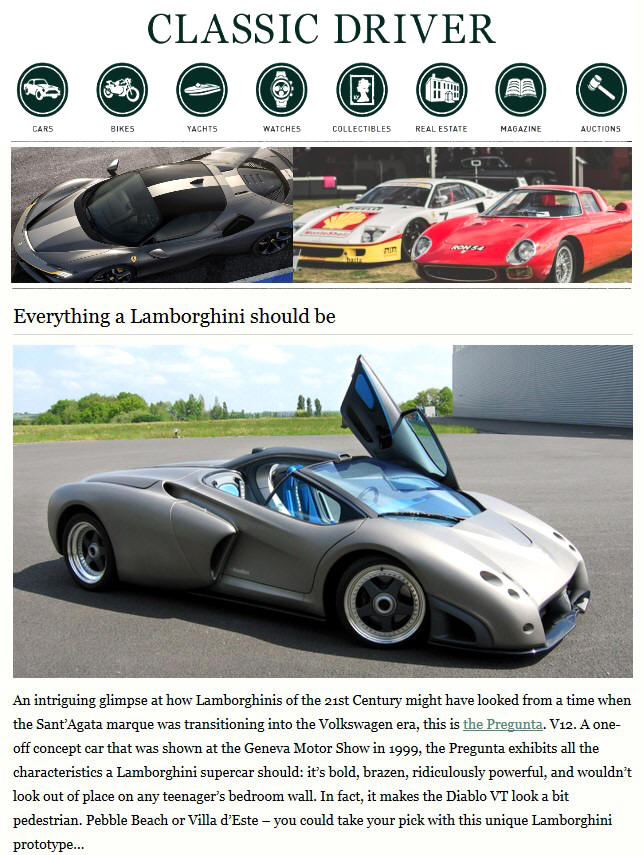 Online Magazine Classic Driver says the Pregunta is "all that a Lamborghini Supercar should be" !