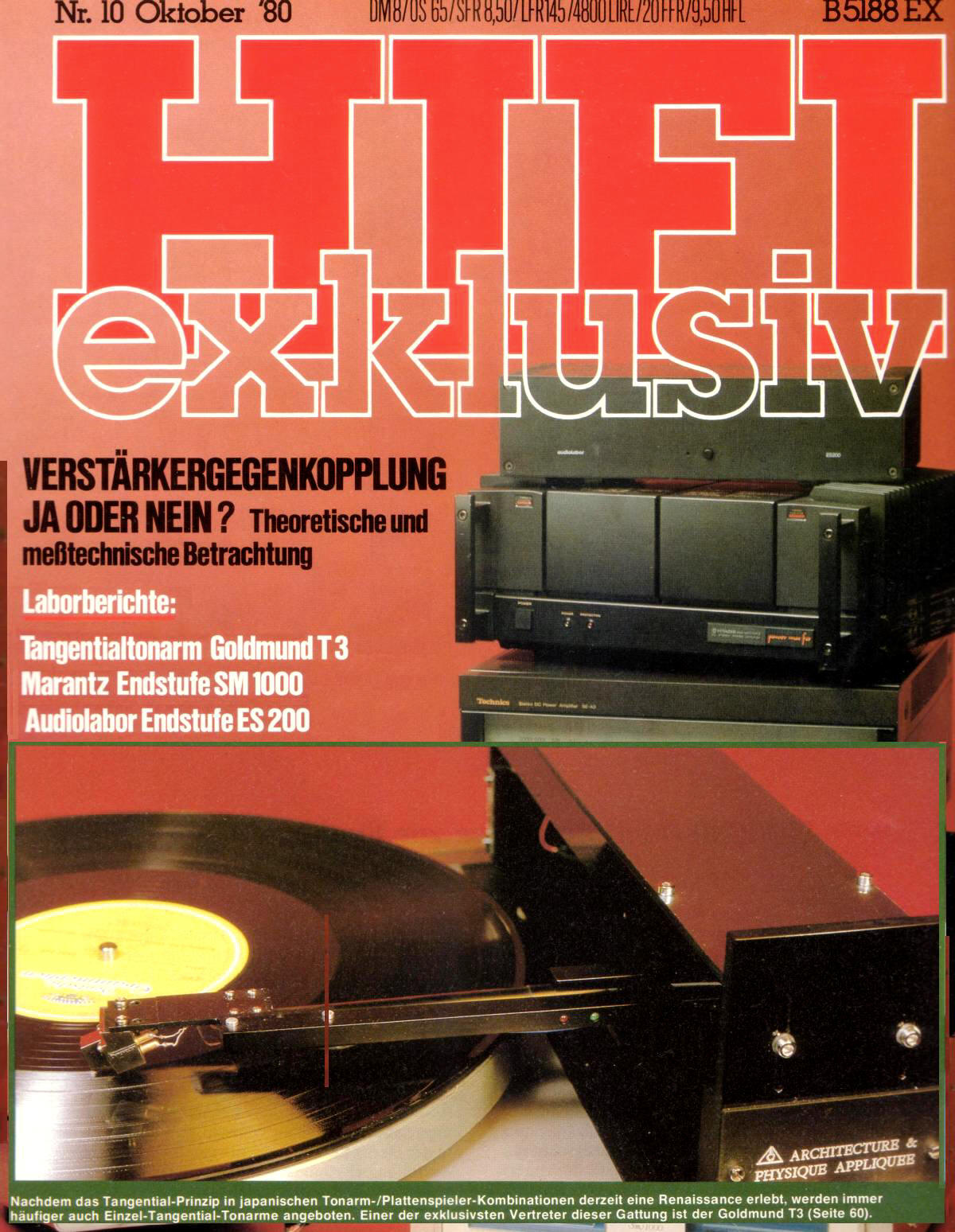 Six mois plus tard, en Juin 1981, ce même magazine indépendant décerne à la platine Goldmund Studio associée au Bras Goldmund T3 la qualification "State-of-the-Art" (appareil représentant l'état le plus avancé de la technologie) :