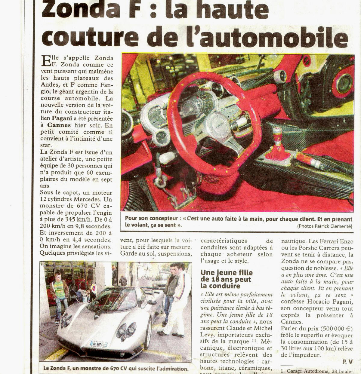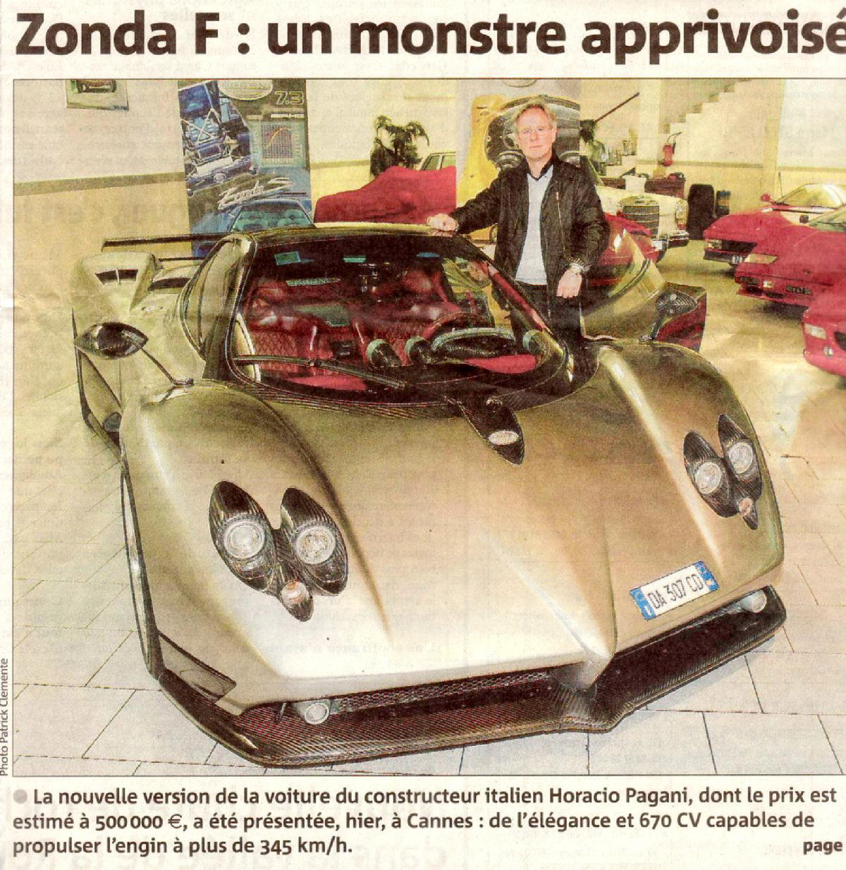 NICE-MATIN : Horacio Pagani présente la ZONDA F chez AUTODROME-CANNES en présence de CLAUDE LEVY, Importateur Exclusif