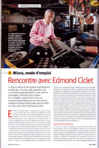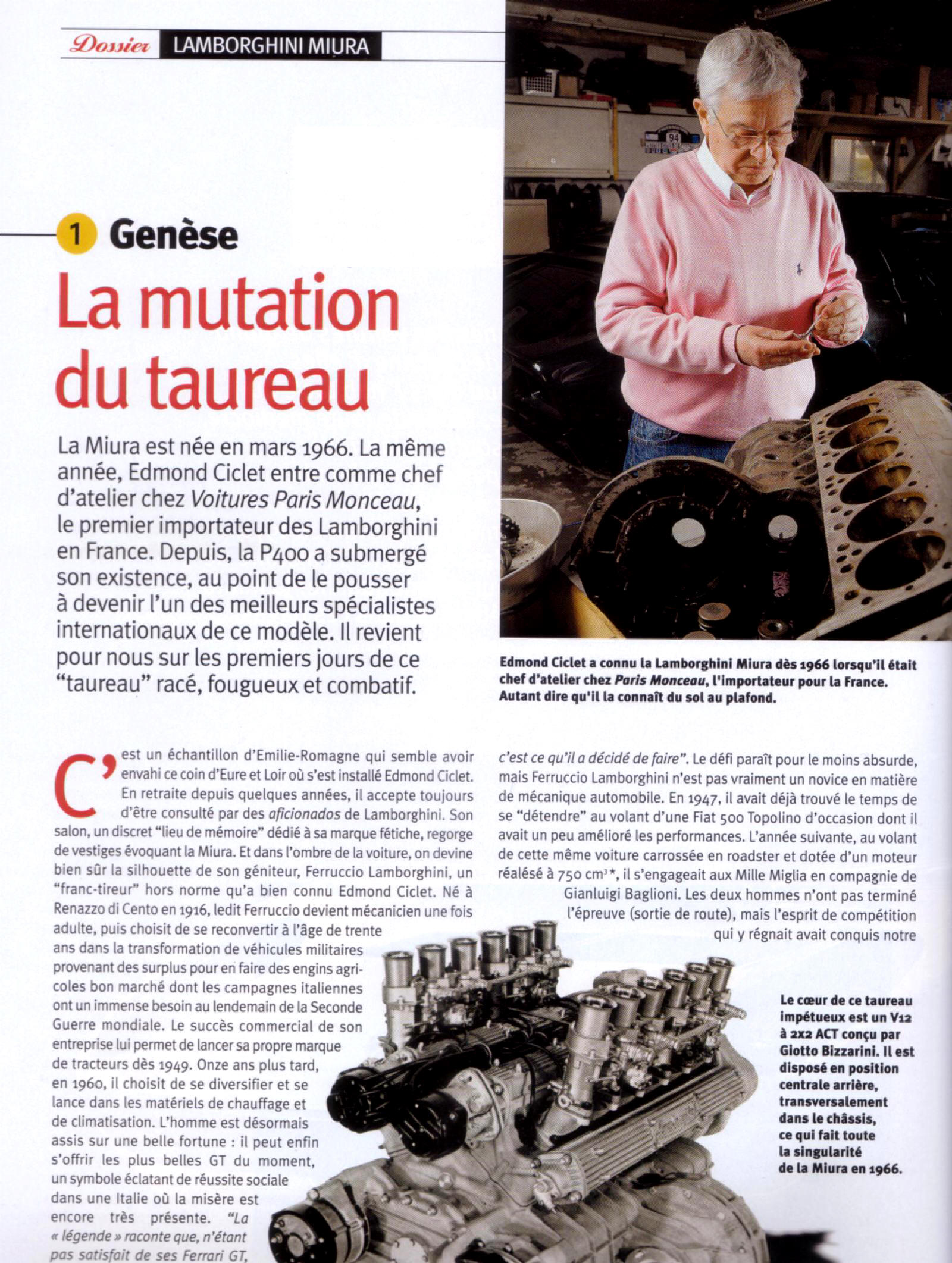 Edmond Ciclet est certainement le plus respecté parmi les spécialistes des Lamborghini anciennes. Nous le connaissons depuis toujours, lui ayant confié mainte fois nos Lamborghini à restaurer, à régler, et c'est notamment à son contact que nous avons forgé notre expérience de cette marque si particulière et qu'on ne peut qu'aimer passionnément lorsqu'on en découvre toute la splendeur, qu'elle soit mécanique, esthétique et même humaine - en effet l'aventure de Ferruccio Lamborghini a été partagée avec de nombreux fanatiques de très belles automobiles comme lui-même, et dont Edmond Ciclet fait partie au premier rang. Son conseil et son immense expérience, sa connaissance approfondie de tous les secrets de ces merveilles italiennes nous ont toujours été et nous sont encore extrêmement précieux.
