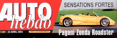 Le magazine AUTO Hebdo (23/42003) définit le Roadster Zonda comme "l'ultime délice"... |