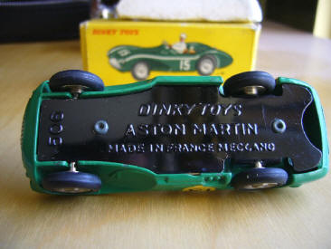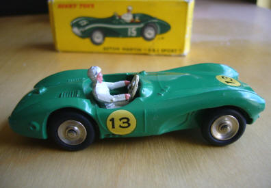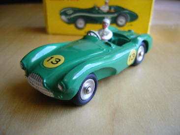 Authentique Dinky-Toys Aston Martin DB3S 1953 en état d'origine (collection Autodrome). Il s'agit de la première des trois versions de carrosserie, avec la grille avant en "coupe-oeuf".