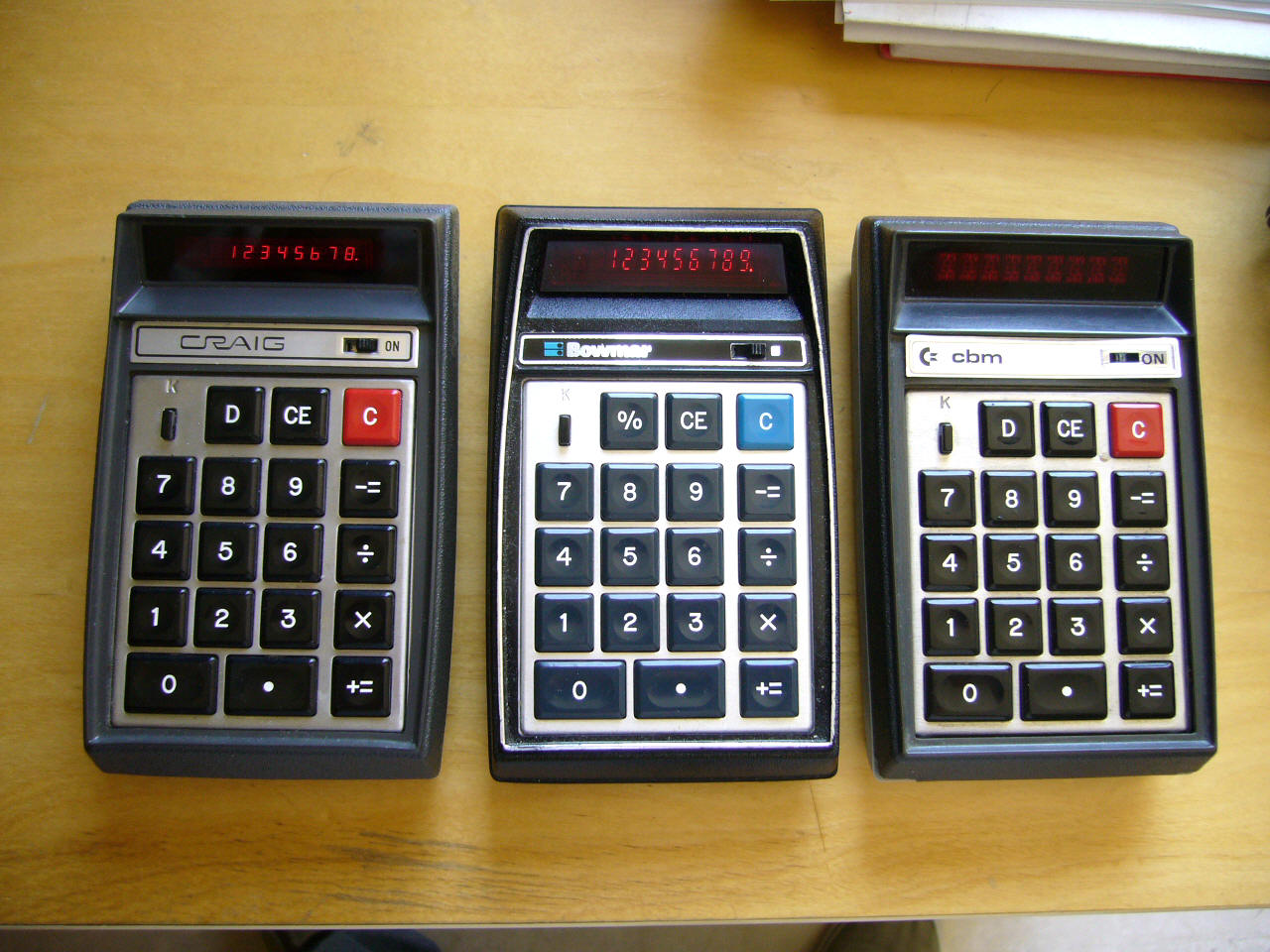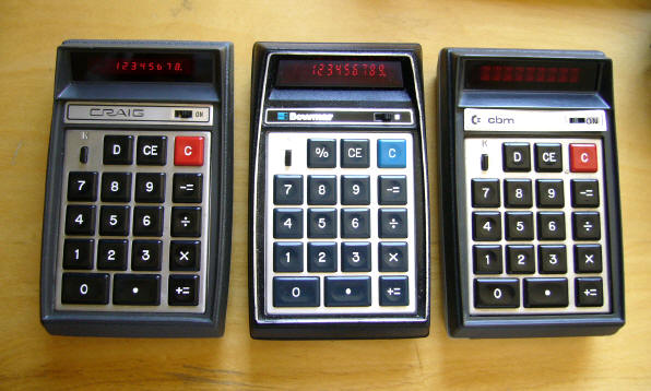 De G. à Dr. : Craig 4501, Bowmar MX80 et CBM/Commodore C110. La Craig et la CMB sont identiques, au logo près.