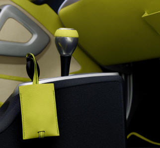 par les selliers du Faubourg St-Honoré. Les cuirs peuvent être de teinte très audacieuses : à droite "Citron vert" ; il existe aussi un orange, et même un rose vif, exceptionnel en sellerie automobile.