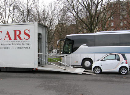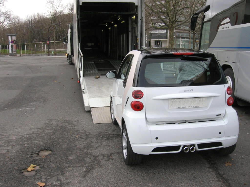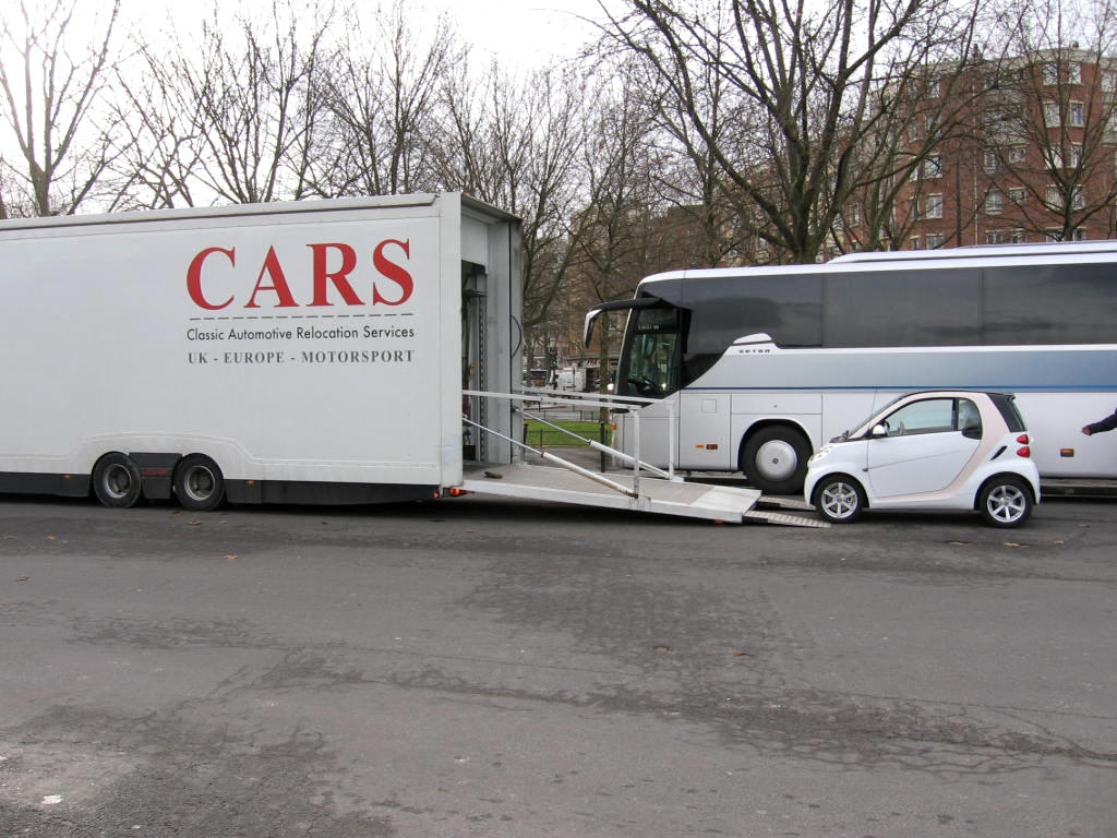 Tôt le matin, le camion de notre transporteur anglais arrive pour embarquer sans autre forme de procès "la Le Mans". Elle sera arrimée dans un conteneur clos, et 25 jours