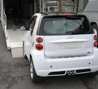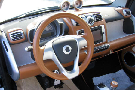 Autodrome ne vend pas que des autos anciennes, comme vous le voyez ci-dessous. Nous n'avons aucun préjugé, et même lorsqu'un client nous demande une Smart.... certes, dopée par Brabus et surtout avec Sellerie signée Hermès... nous nous faisons un plaisir de le satisfaire. La finition et l'équipement de cette édition limitée de quarante exemplaires seulement, dont chacune est exécutée en coloris "sur mesure", sont remarquables pour une petite micro-auto de ville. Du reste, le client, un collectionneur, n'a pas hésité à commander deux exemplaires, un noir et un blanc...