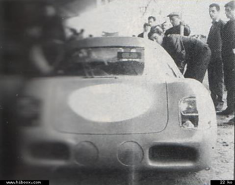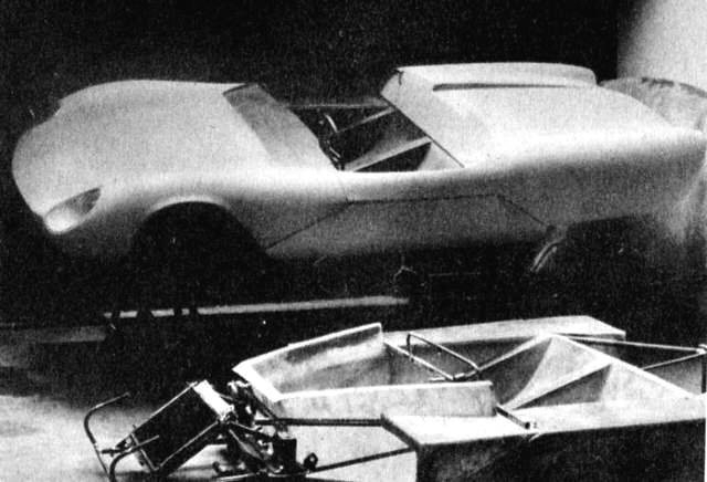 Maquette de travail (à g.) ; quelques mois plus tard, au pesage du Mans 1965 (à d.). La voiture n'était pas prête, faute de temps et ne fut pas admise.