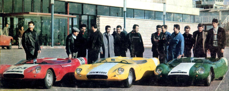 Cet exemplaire sauvé de l'oubli pose chez Autodrome Cannes à côté d'une Ferrari moderne : quelle leçon de simplicité, d'économie de moyens, et quel caractère...! On croirait un des ces petits prototypes des 24 heures du Mans des années soixante. La technique n'est pas très éloignée, les dimensions, le poids et la forme très basse la placent dans la même catégorie que les Alfa-Romeo SZ et TZ, les Osca, les Porsche RS et 904 GTS...