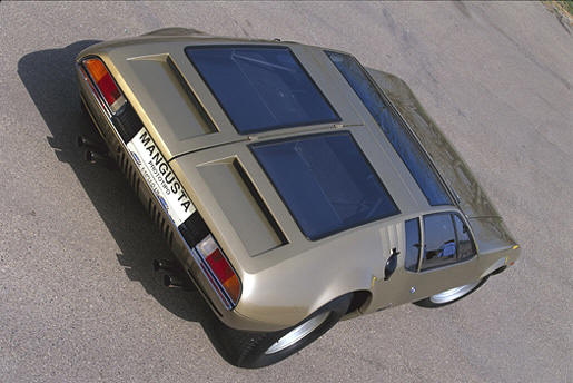 Révolutionnaire, la Mangusta l'était certes, inventant un nouveau langage esthétique. Mais aussi et surtout, elle est d'une beauté suprême, intimidante ; rarement le traitement du métal aura été aussi évocateur, combinant des lignes d'une netteté acérée avec des courbes tendues par une énergie qui semble sourdre de toute la machine. Du fait des porte-à-faux très réduits, et de la présence aux angles du volume, des quatre roues chaussées de pneus volumineux de l'époque, la voiture semble s'accroupir avant de bondir, muscles bandés comme ceux d'une bête sauvage menaçante. Cette force contenue confère une présence rare, unique à cette véritable œuvre de sculpteur.