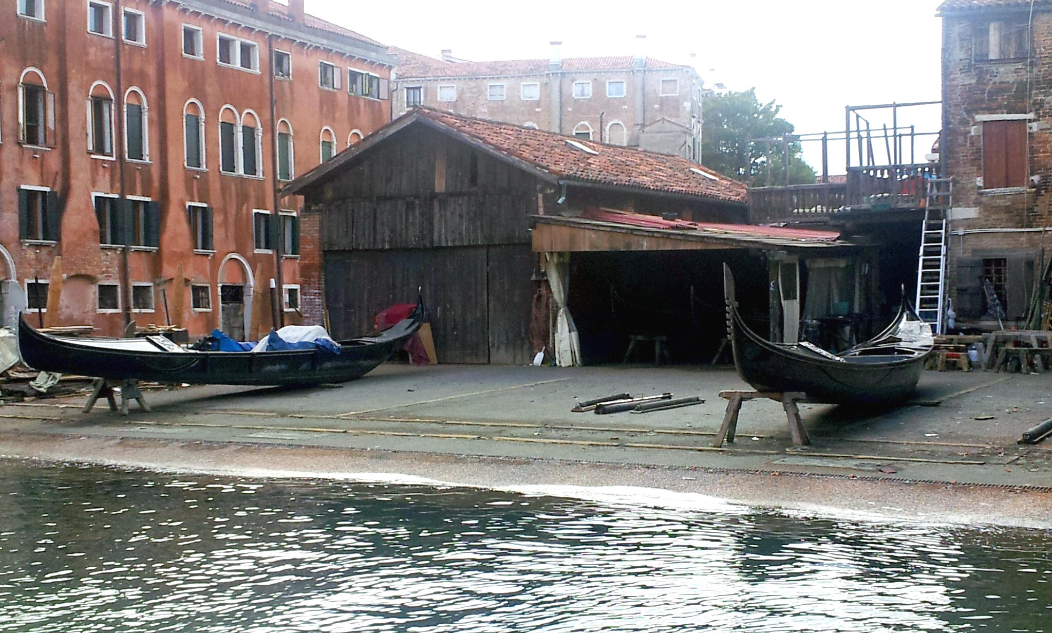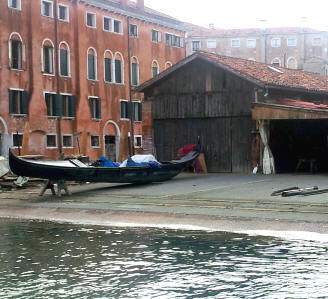 La barque à fond plat que l'on nomme là-bas gondola (accent sur la première syllabe) aujourd'hui simplement utilisée pour des promenades, est un esquif dont l'usage, pour le transport de personnes ou de marchandises, remonte à près de six cents ans. Elaborée au fil du temps, la gondole est de dessin légèrement asymétrique, pour compenser les coups de rame donnés d'un seul côté. La fabrication et la restauration des gondoles est assurée par des chantiers spécialisés (photo ci-dessus à droite), comme pour les automobiles de collection.