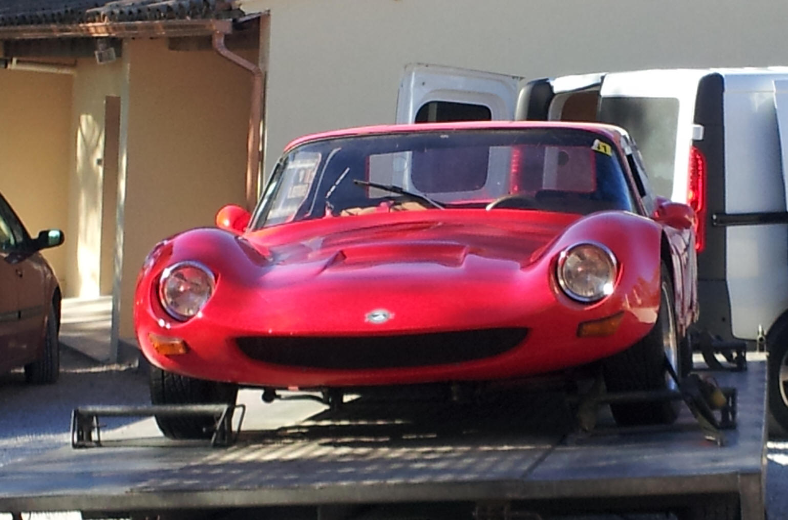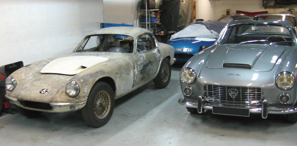 Notre Lotus Elite Série 2, redécouverte un demi siècle après ses victoires, cotoie la Flaminia carrossée par Zagato. Fabriquées pratiquement le même année, elles illustrent