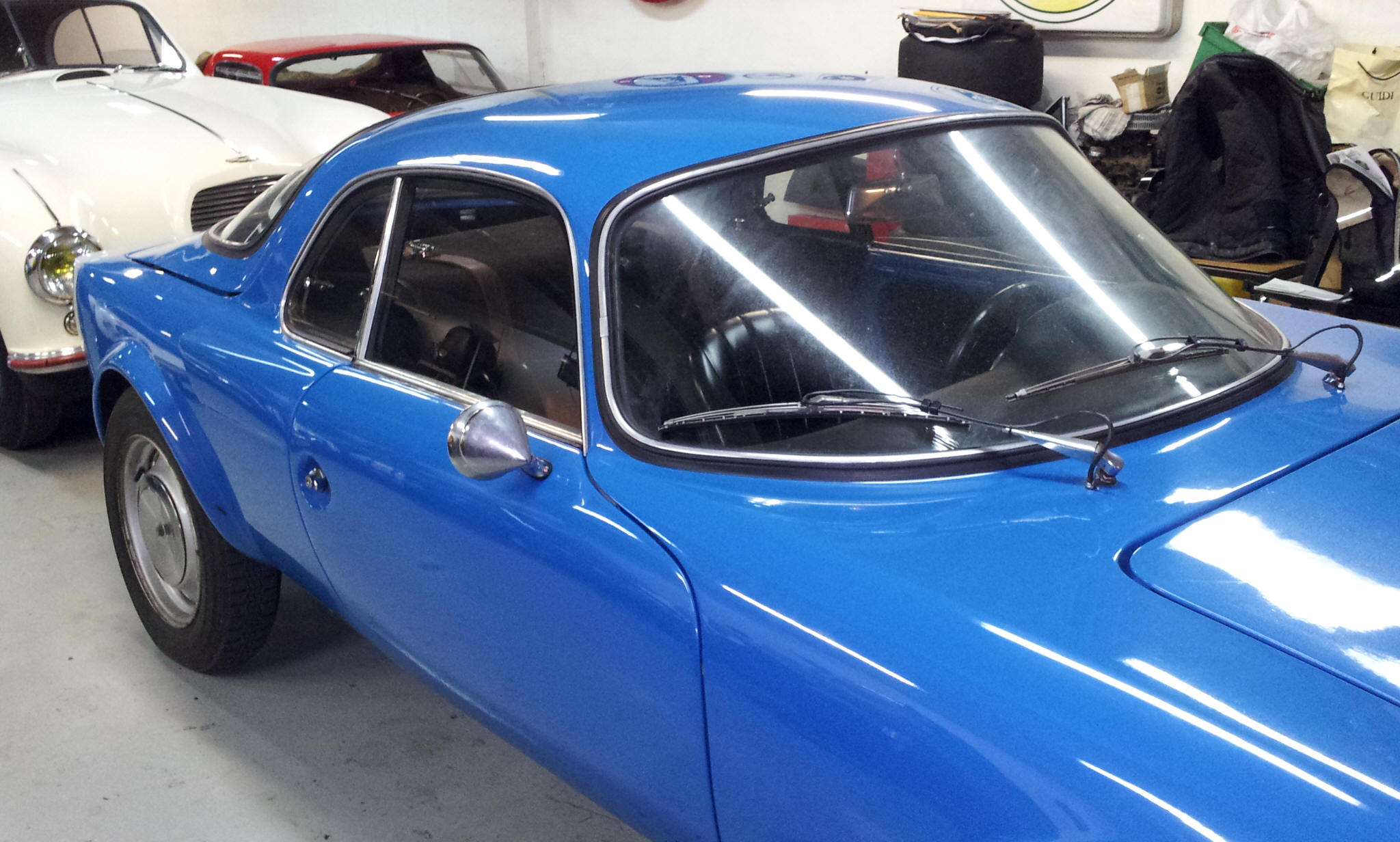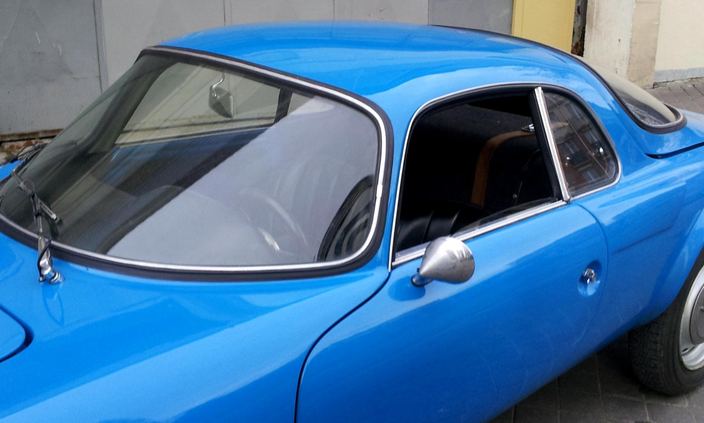 Cette intriguante berlinette est une des rarissimes versions tardives à feux avant inclnés (comme les Porsche 911). Elle possède deux autres particularités uniques : des vitres latérales descendantes, alors que les autres ASA à feux inclinés ont des vitres coulissant hroziontalement en 2 parties ; et aussi des sorties d'air latérales, qu'aucune autre ASA à feux inclinés ne possède...Ces deux caractéristiques se retrouvent sur les photos du prototype de la Targa Florio - comme ci-dessous ... Carrosserie en fibre de verre, ajoutés à ces détails spécifiques... un fasceau de présomptions convaincant !