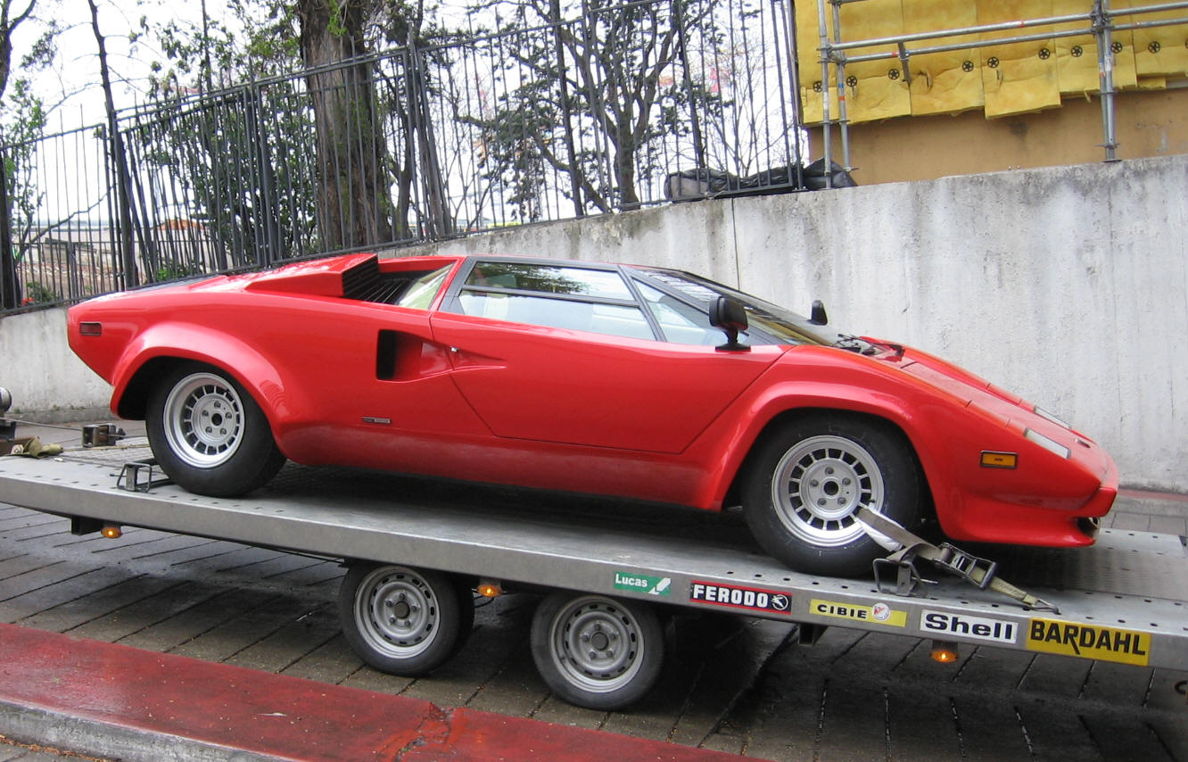 Les travaux de carrosserie seront bientôt engagés par le nouveau propriétaire, en Italie, et restitueront aux ailes leur finesse, ainsi qu'à l'avant de la voiture, normalement dépourvu de spoiler. Cet homme, qui est en train de se constituer une collection de Classiques Italiennes, notamment Lamborghini, est désormais l'heureux possesseur d'une très rare Countach "périscopique", dont l'historique est exceptionnel, tout comme son toit démontable.