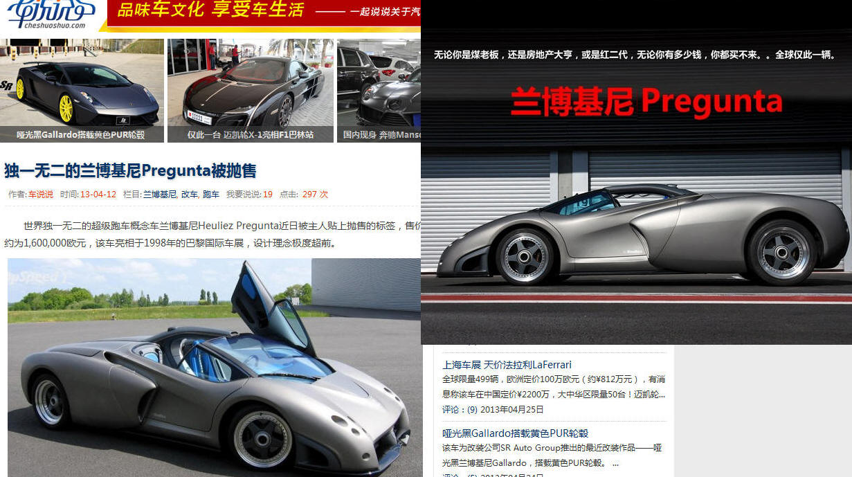 Sans doute, la Lamborghini Pregunta est la plus exceptionnelle, par son dessin réellement fondateur d'une nouvelle esthétique, et aussi par son destin et sa place dans l'Histoire. Alors qu'on parle aujourd'hui hélas d'une triste fin pour la Carrosserie Heuliez, la Pregunta nous rappelle qu'elle fut le fleuron de son prestige: c'est sa filiale italienne qui créa ce Roadster unique au monde en 1998, et en liaison avec l'usine Lamborghini, juste avant que la maque se fonde dans le Groupe AUDI.