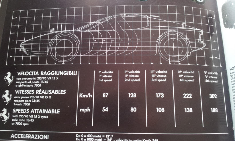Comme toujours à Maranello, de la piste à la route, le progrès technique issu de la compétition, s'imposa : la BB affichait fièrement 302 km/h, première Ferrari de route à franchir le seuil mythique - voir le document ci-dessous. Il ne s'agissait plus de chiffres sur un compteur, mais d'une vitesse réelle revendiquée - qu'aucun essayeur ne put vraiment confirmer, comme souvent avec ces modèles de hautes performances. Aujourd'hui, la BB s'inscrit parmi les plus extrêmes Grand Tourisme de l'époque Classique, et pas seulement pour sa promesse de vitesse : avant que la production s'industrialise avec la Testarossa (1984), la BB est peut-être l'apogée de la lignée des Ferrari de route Classiques.
