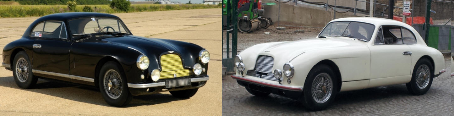 La DB2 à gauche, véritable voiture "compétition-client" révèle sa ligne sportive et nerveuse, comparée à la DB2/4 à droite, alourdie par son toit allongé pour les places arrière, et son hayon.