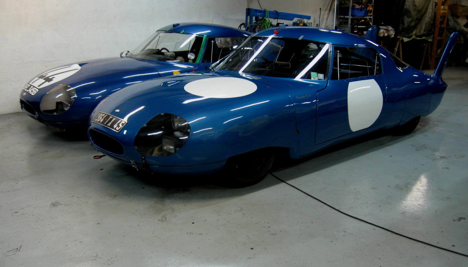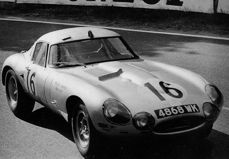 A droite, la fascinante Jaguar E "lightweight" de Lindner / Nöcker ; construite en aluminium, profilée, disposant de 340 ch. elle fut la réponse de Jaguar à la 250 GTO Ferrari ... Un univers à part.