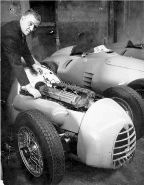 Amédée Gordini ; au centre avec la T16 six-cylindres de Formule 1