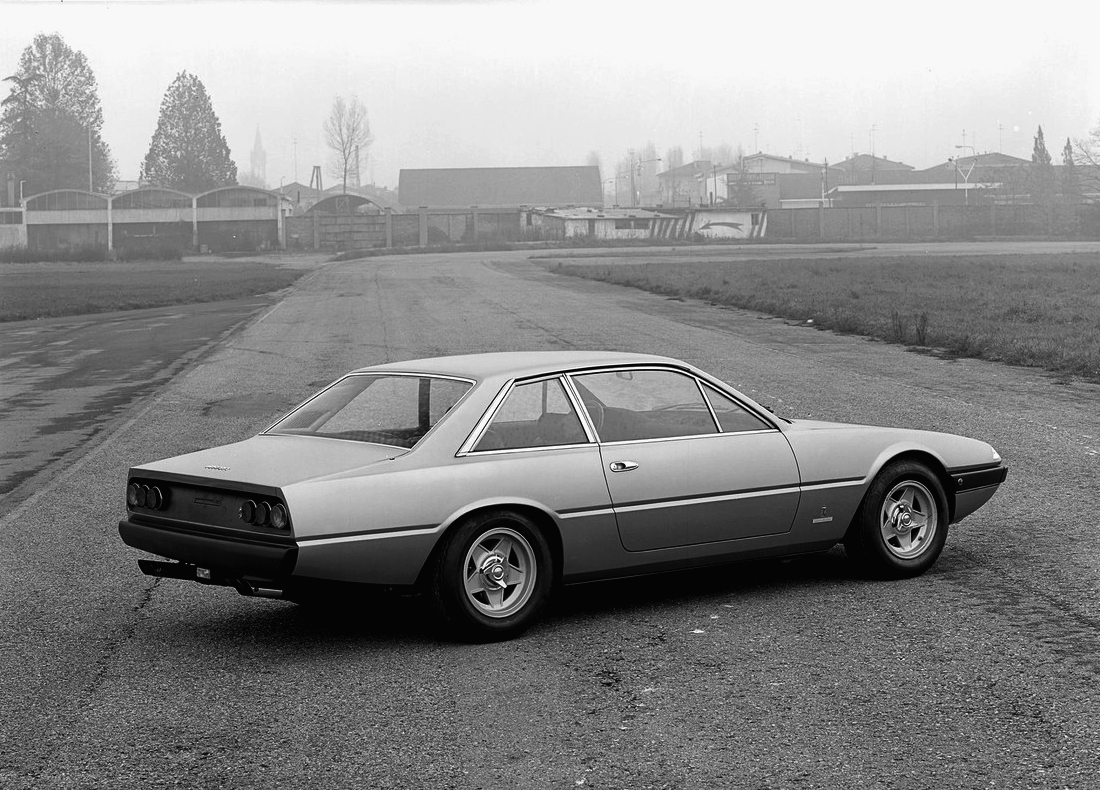De plus, son dessin est aussi pur que remarquable d'élégance: le temps a fait reconnaître la beauté singulière de celle qui est peut-être la plus originale des Ferrari par sa double personnalité. Elle marie une allure luxueuse et souveraine avec la puissance irrésistible d'un moteur jumeau de celui de la Daytona. Certes la lubrification par carter sec a été délaissée, et les carburateurs placés à l'horizontale pour plus de finesse. Mais si elle déclare diplomatiquement quelques chevaux de moins que son illustre aînée, le coeur est bien le même. Les roues compétition à fixation centrale et l'arrangement royal des six feux arrière n'existent que sur cette première édition de la lignée.
