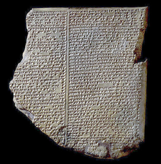 La tablette de gauche relate entre autres l'épisode d'un déluge qui aurait submergé le monde