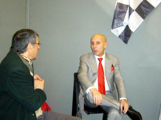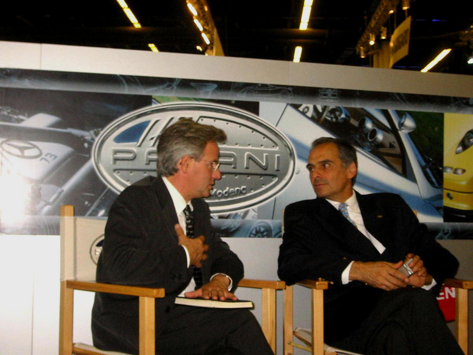 Mondial de l'Auto 2002 : Horacio Pagani discute avec Claude Levy,