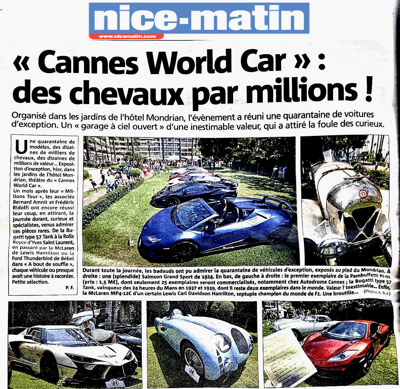 On July 6 & 7, experts and anthusiasts of the Côte d'Azur and of Monaco gathered at the luxury Hôtel Mondrian (La Croisette), to admire some of the best modern and vintage classic cars : Mc Laren, Lamborghini, Jaguar, Porsche, Bugatti, Rolls-Royce, Ferrari, Maserati, and the new Pambuffetti.