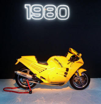 L'une des vedettes de l'exposition est la moto Lamborghini Design 90, qui fit sensation en 1986 par ses formes radicales et voluptueuses et par sa technique issue de la compétition, grâce à un partenariat avec Boxer-Bikes, constructeur de motos de course. Le prix extravagant, deux fois celui des motos haut de gamme de l'époque, explique en partie une production extrêmement limitée, environ une quinzaine d'unités. Autant dire que cette moto est un oiseau très, très rare, qu'il faut avoir vu au moins une fois dans sa vie ! Autodrome, comme spécialiste de la marque depuis des décennies, ne pouvait que contribuer à faire connaître cette merveille en prêtant un de ses exemplaires.