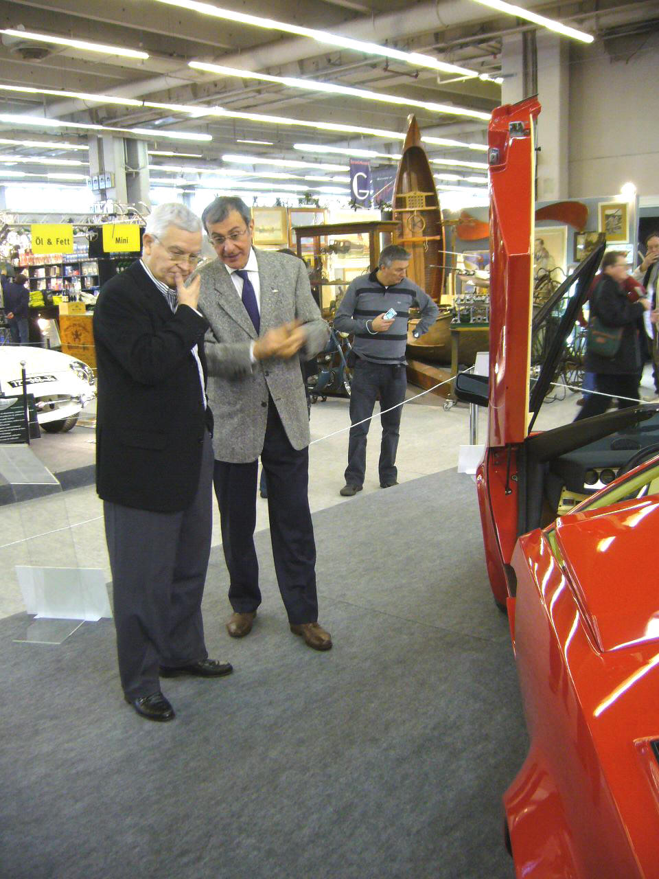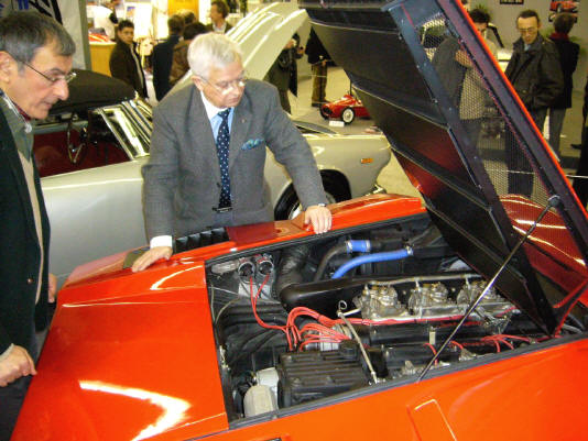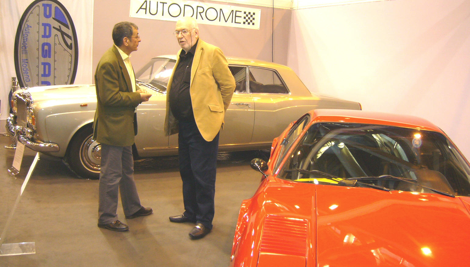 AUTODROME retrouvait avec plaisir ses amis et clients sur le stand de l'édition 2008 : l'ex-pilote de F1 et de moto Jean-Pierre Beltoise nous a fait l'honneur d'une visite, avec une photo souvenir auprès de l'exceptionnelle motocyclette Lamborghini Boxer à carénage profilé dérivé du style de la Countach Anniversaire. En bas à droite, Neldo Levy (Autodrome) s'entretient du marché de l'Automobile de collection avec l'un des plus influents Experts en la matière, Maître Souvrain.