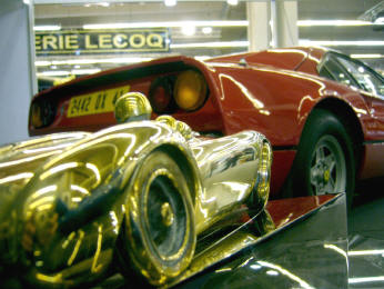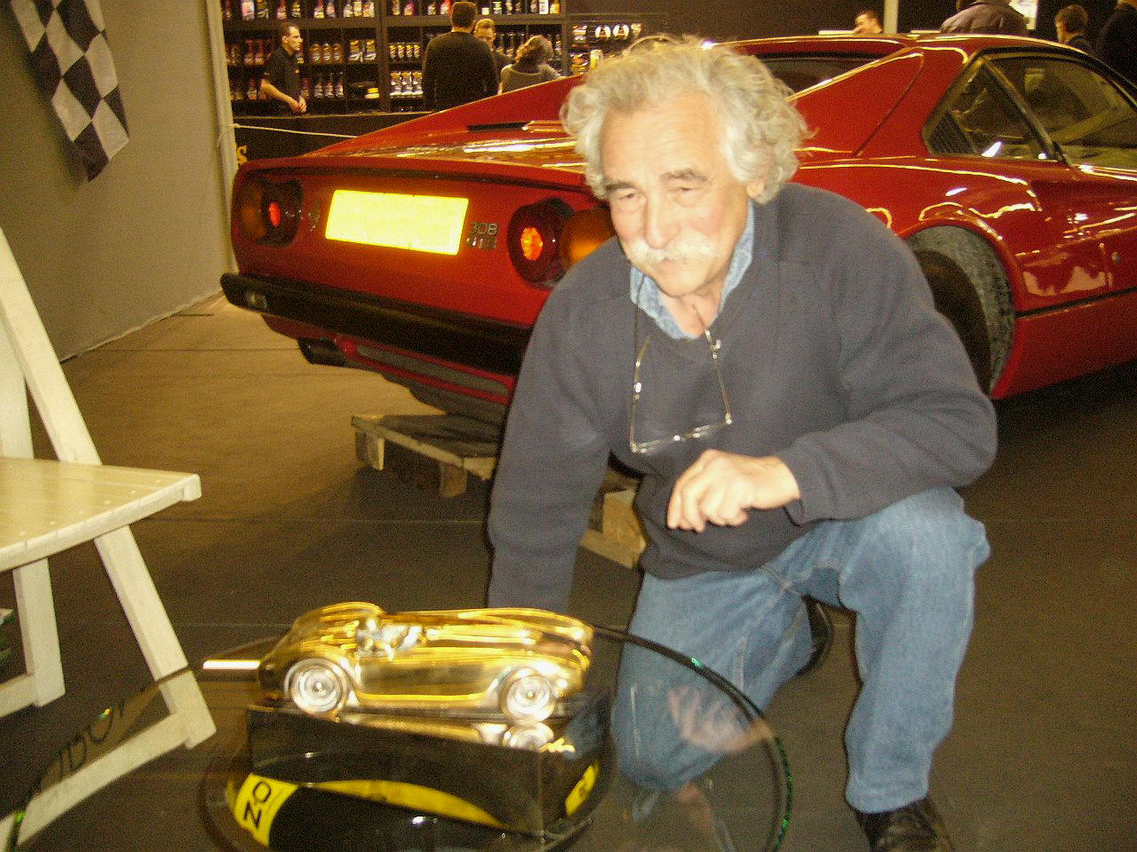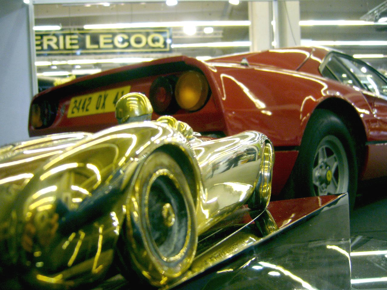 Variations autour d'une Ferrari 308 Vetroresina, et d'un bronze représentant une 375 MM, signé Alain Moitrier. Le sculpteur nous a fait l'honneur d'une visite sur notre stand.