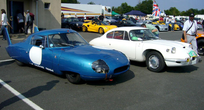 Au centre Neldo Levy (Autodrome) s'entretient avec P-M Fournier, collectionneur et ancien propriétaire de la CD-Panhard Le Mans.