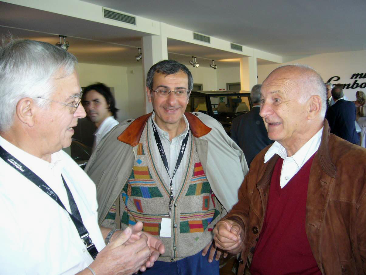 Nous avons eu le grand plaisir de participer à cette rencontre unique dans l'histoire: la réunion amicale de presque tous ceux qui ont fait la légende Lamborghini. Paolo Stanzani, Giotto Bizzarini (concepteur du premier V12 Lamborghini), Ubaldo Sgarzi (Directeur commercial pendant plus de vingt ans), Claudio Zampolli (ancien ingénieur et metteur au point Lamborghini), GianCarlo Guerra (le chef d'Atelier de Scaglietti, puis responsable de la fabrication des carrosseries chez Lamborghini), Orazio Salvioli (ancien responsable technique Lamborghini), Fabio Lamborghini (neveu de Ferruccio), Umberto Marchesi (le fabricant des châssis) ne sont que quelques noms parmi le groupe des proches de Ferruccio Lamborghini réunis à Sant'Agata pour cette occasion.