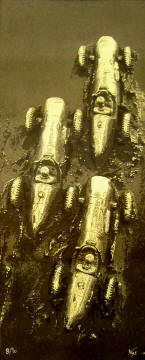 L'art à Rétromobile: œuvres de Hideki Yoshida, à gauche, et Hervé Nys, à droite