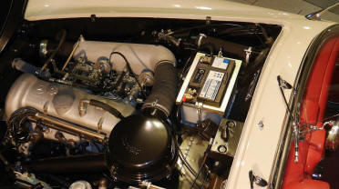 | The dashboard is a work of art, drawn, carved and evocative, the incomparable charm of the sports cars of the sixties is before our eyes, even at a standstill. The beautiful chrome circle serves as an alarm and its rotation, activates the turn signals .. The watch, on the cover of the glove box, is mechanical winding. |