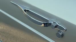 En s'approchant, tout est beau, la calandre, la poignée de porte, les entourages de vitres, on apprécie, et on mesure la différence, rien à voir avec ce clinquant industriel des voitures "haut de gamme" d'aujourd'hui, ici, c'est du fait main, le métal ouvragé puis chromé, les formes peaufinées au fil des décennies.