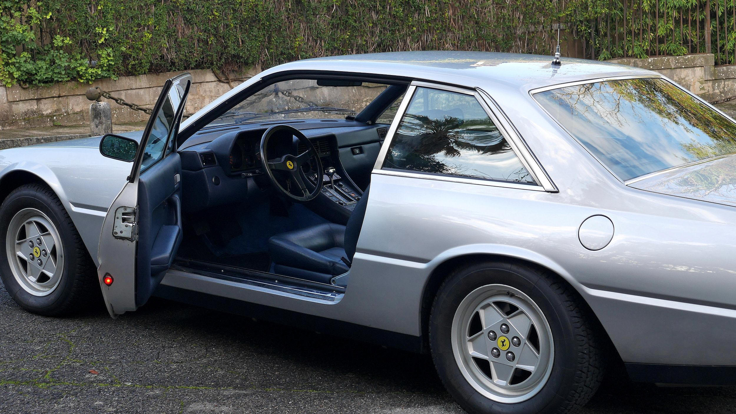 Les Ferrari 412 sont rares, 576 ont été construites au total dont seulement 245 équipées d'une boite automatique et volant à gauche. Celle-ci, magnifiquement préservée, fut livrée neuve en france en 1987 par les Ets. Pozzi dans une combinaison de couleurs particulièrement élégante, argent métallisé, cuir bleu foncé et moquettes assorties. Son premier propriétaire ne s'en sépara que vingt-huit ans plus tard; elle n'en connut ensuite que trois autres; son compteur n'affiche qu'un peu plus de 61 000 km. |